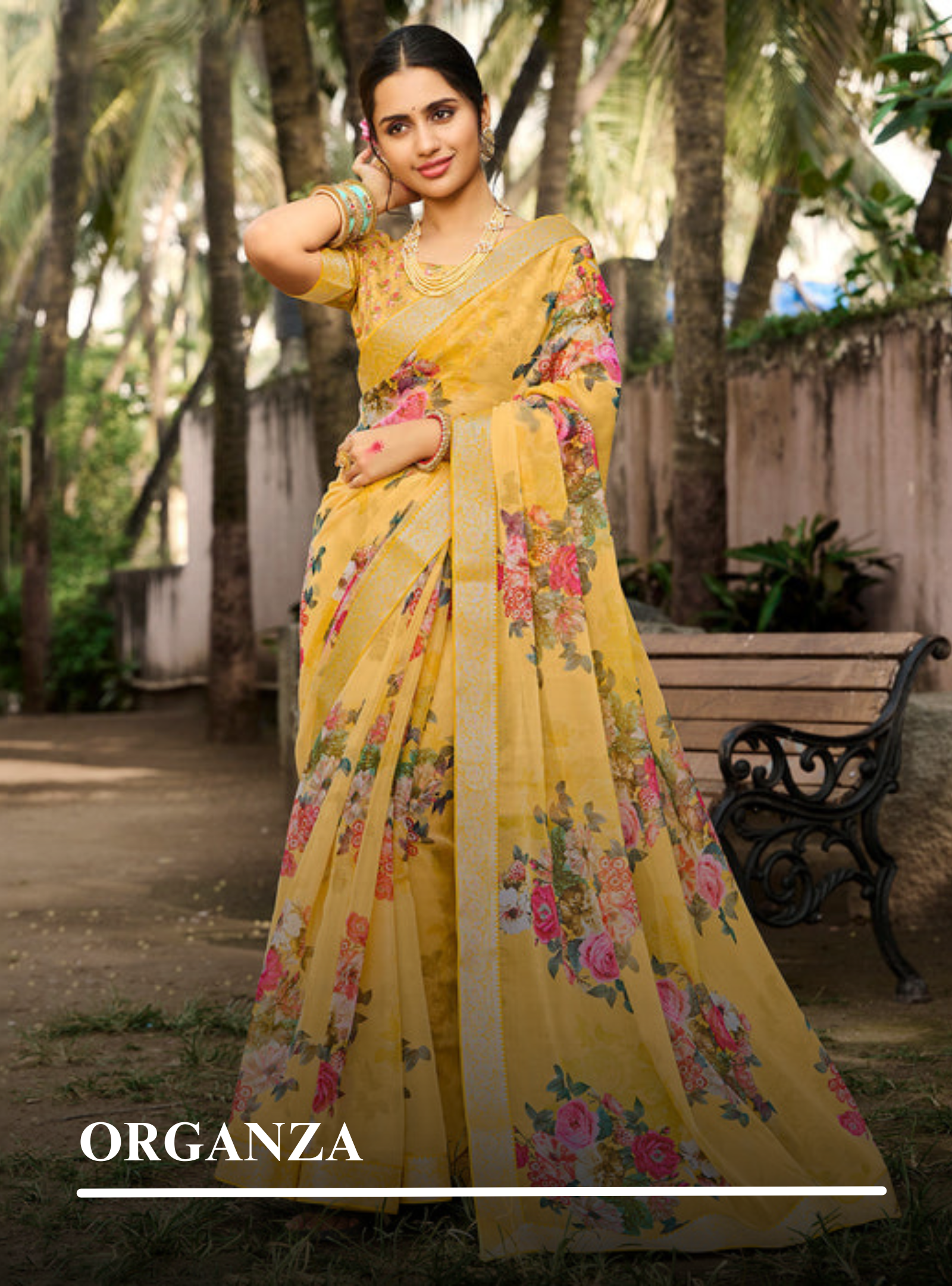 Laxmipati Gud_Chini N-2233 Organza Yellow Saree