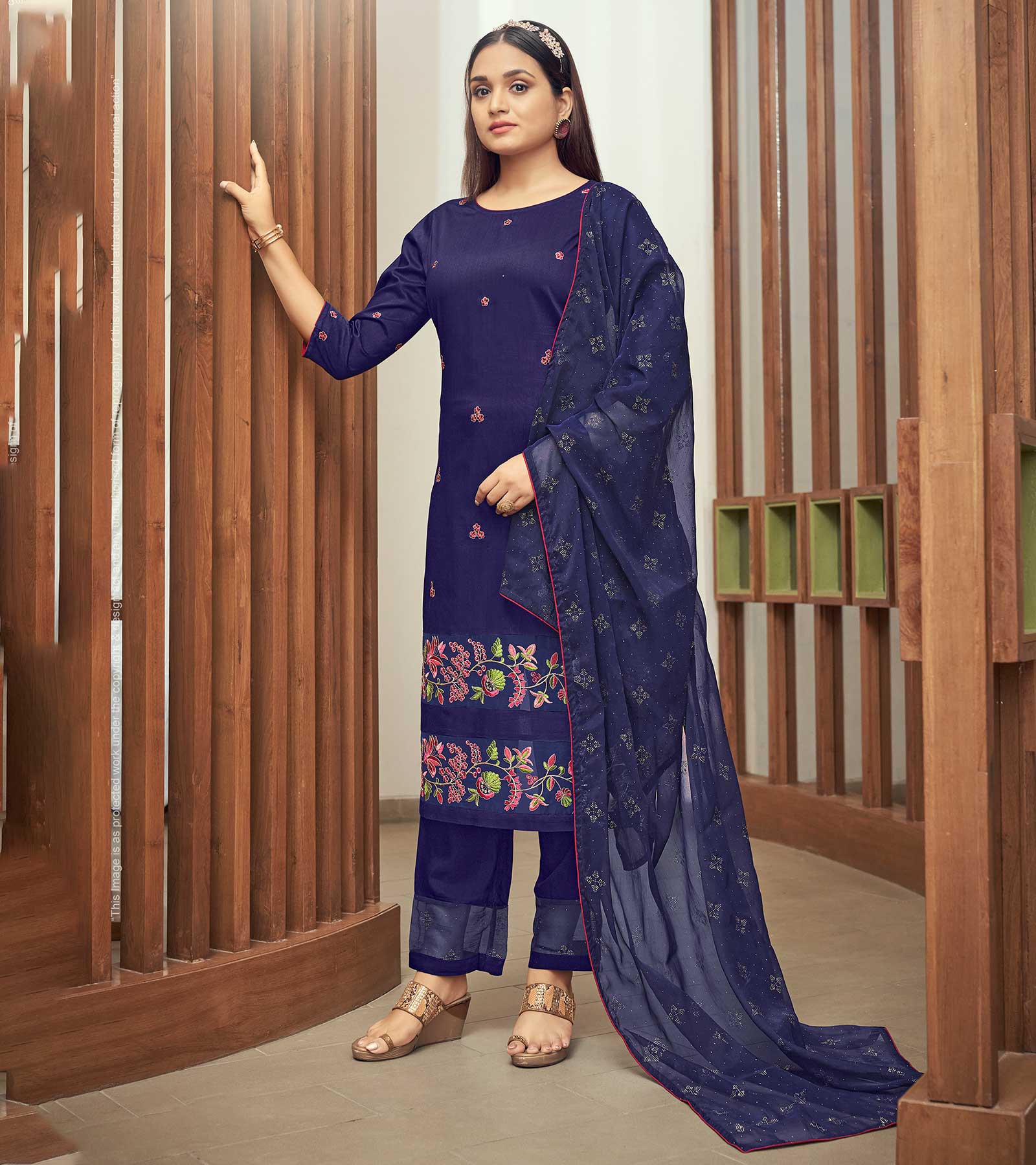 Laxmipati Cobalt Blue Straight Cut Kurti, Pant & Dupatta