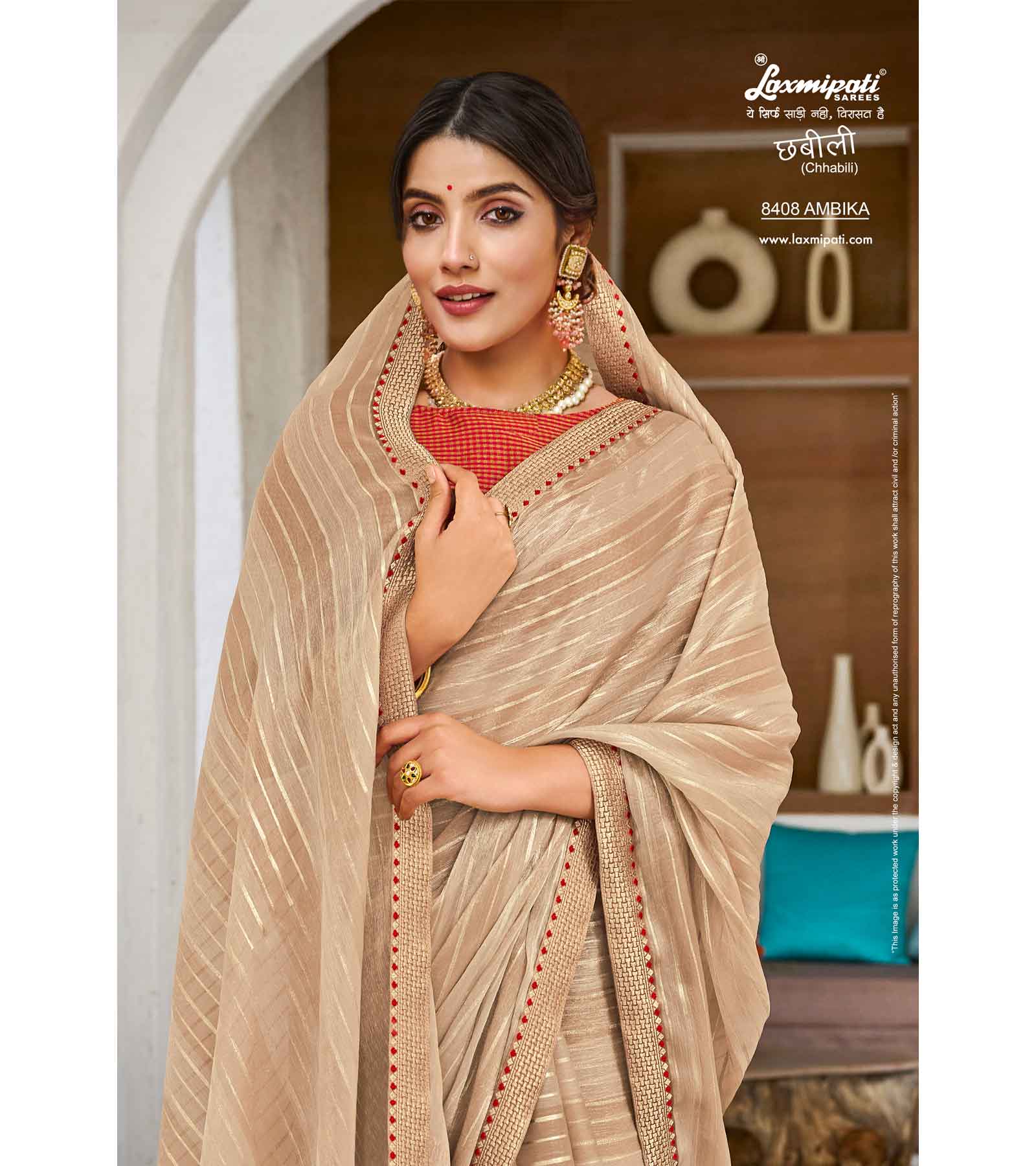 Laxmipati Chhabili 8408 Sparkle Chiffon Chikoo Saree