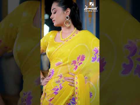 Laxmipati Ishita Yellow Floral Printed Chiffon Saree