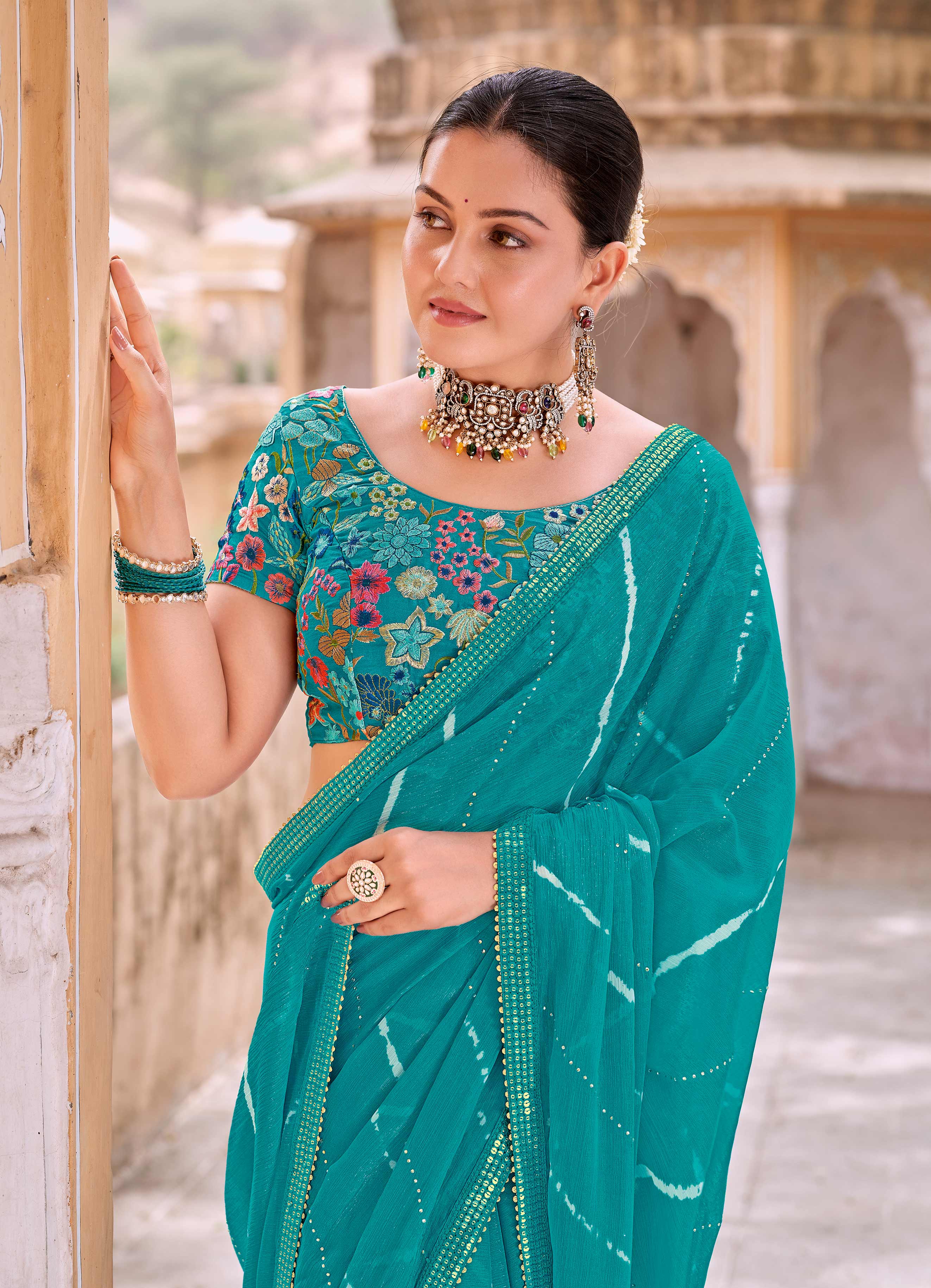 Laxmipati Leheriya Printed Chiffon Saree in Turquoise Blue Color with Unstitched Blouse