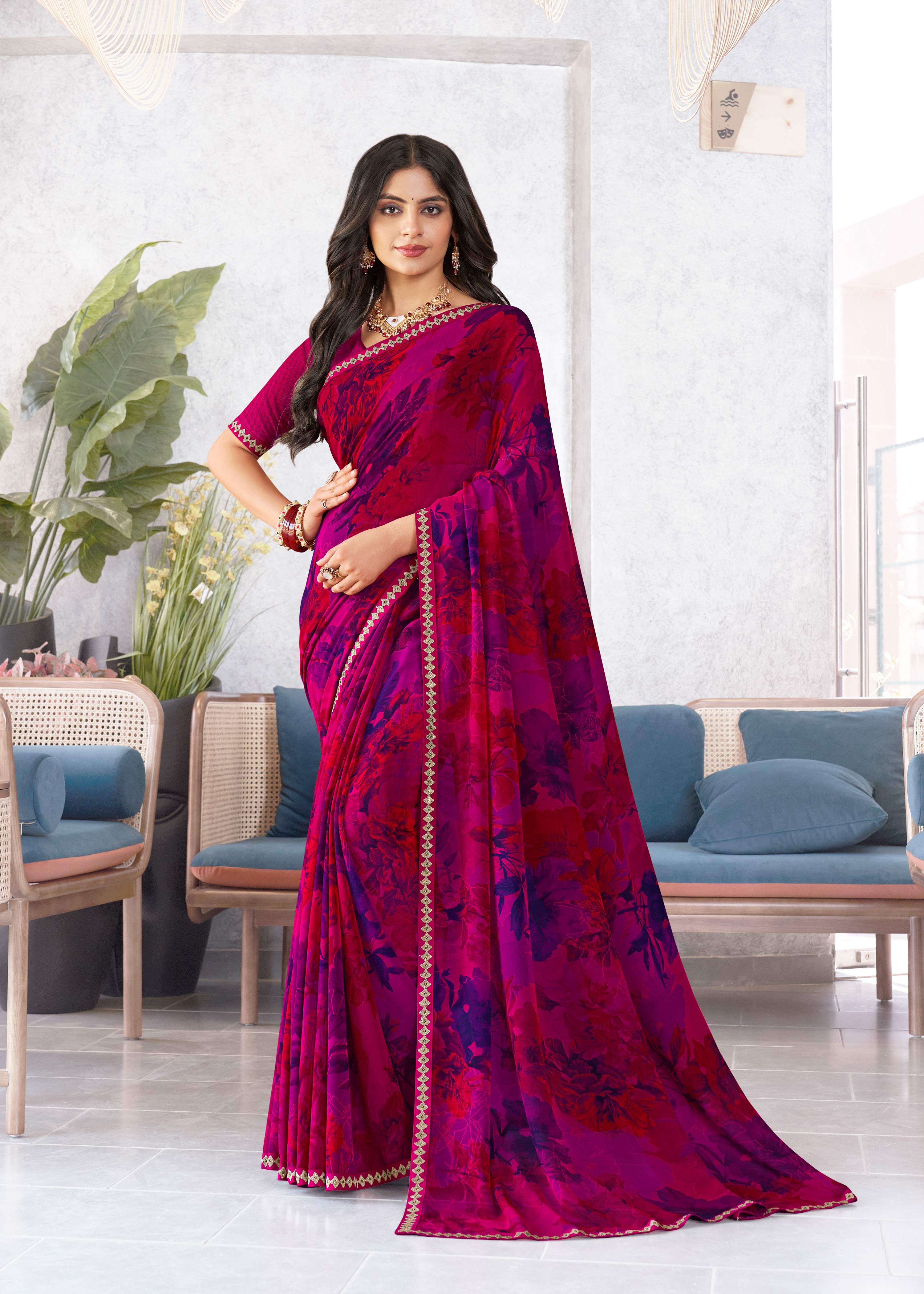 Laxmipati Mala Floral Printed Georgette Saree in Magenta Color with Unstitched Blouse