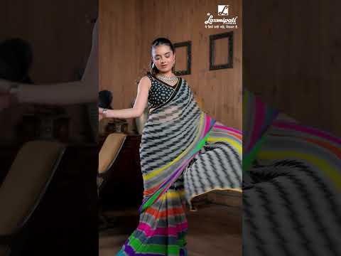 Laxmipati Designer Multicolor Georgette Stripe Print With Lace Border Saree