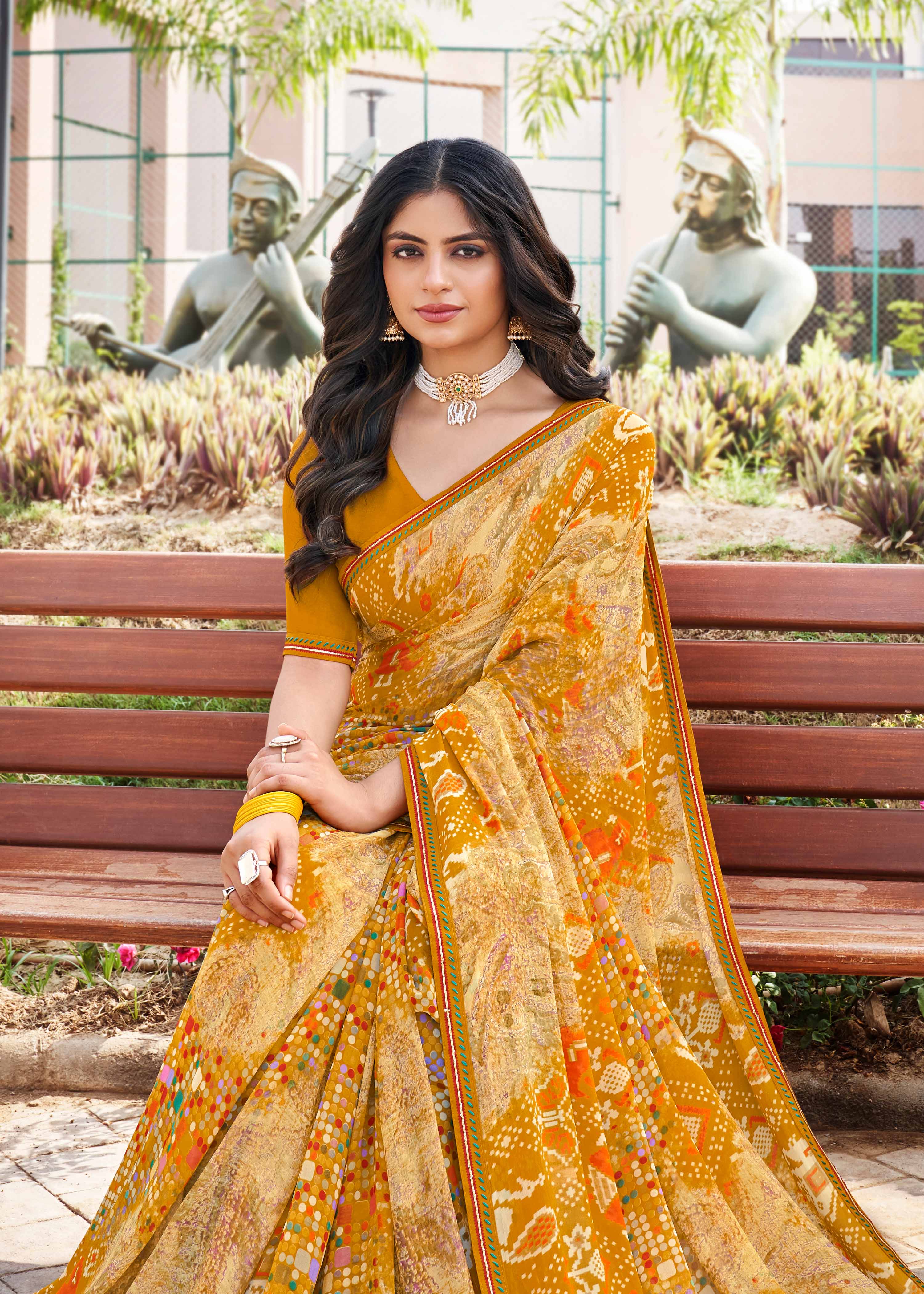 Versatile and effortlessly graceful, your georgette saree can take you from casual brunches to office meetings and light day celebrations with ease. For a relaxed daytime look, pair it with a printed blouse and playful accessories. At work, switch to a structured blouse in solid tones and minimal jewellery to keep it sleek yet elegant. Elevate the same saree for events with statement earrings and a stylish drape — because true style is all about how you wear it.