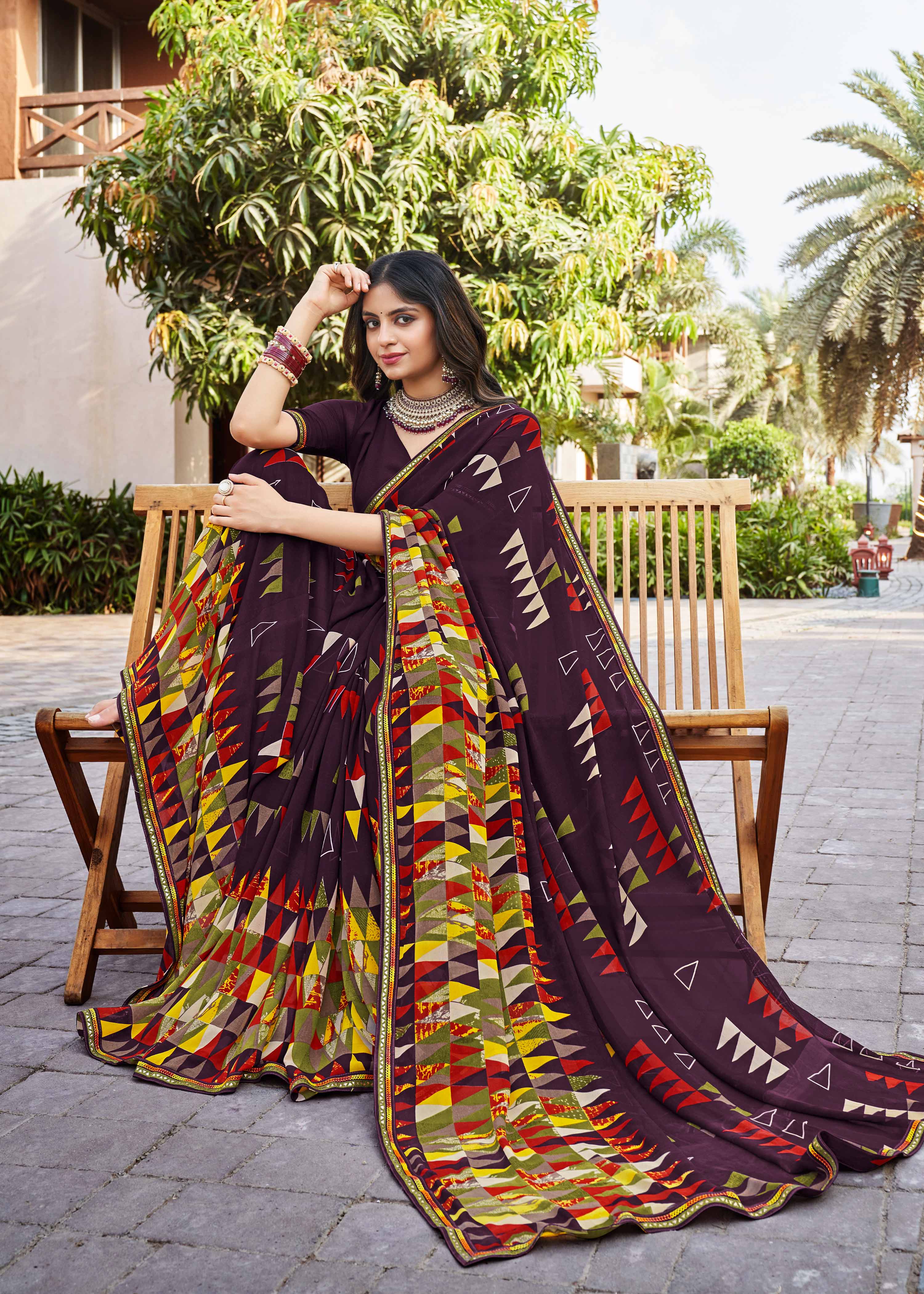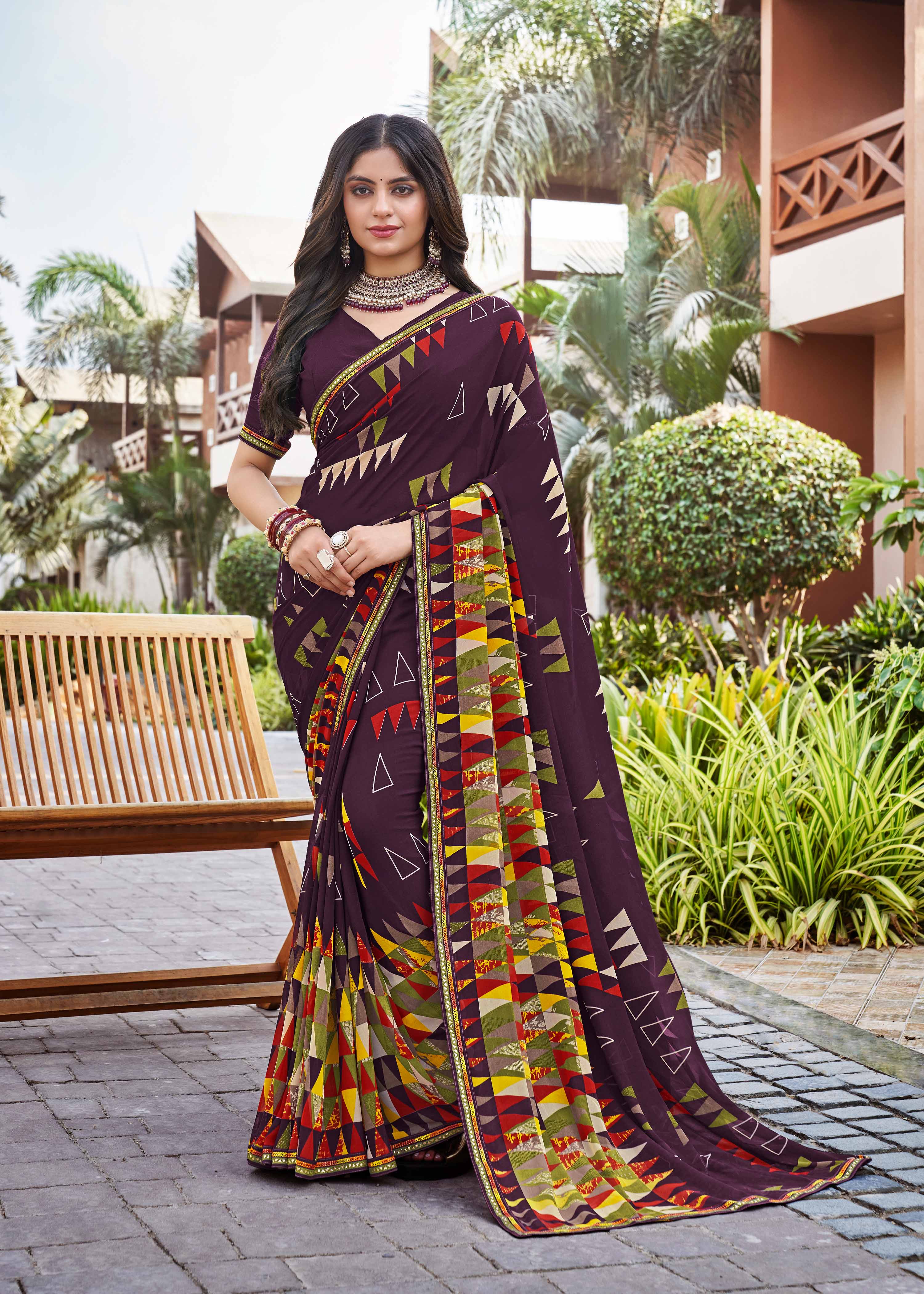 Ready to Wear Laxmipati Noori-2 Geometric Printed Georgette Saree in Wine Color with Unstitched Blouse